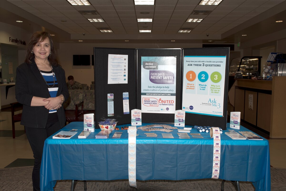 PETERSON AIR FORCE BASE, Colo. – Col. Scot Spann, 21st Medical Group commander, Col. Todd Moore, 21st Space Wing commander, and Senior Airman Folarin Akinwale, 21st MDG uniform business office manager participated in the Room of Horrors safety test, March 15, 2018. Maria Bueno, patient safety program coordinator looks on as an observer. (U.S. Air Force photo by Cameron Hunt)