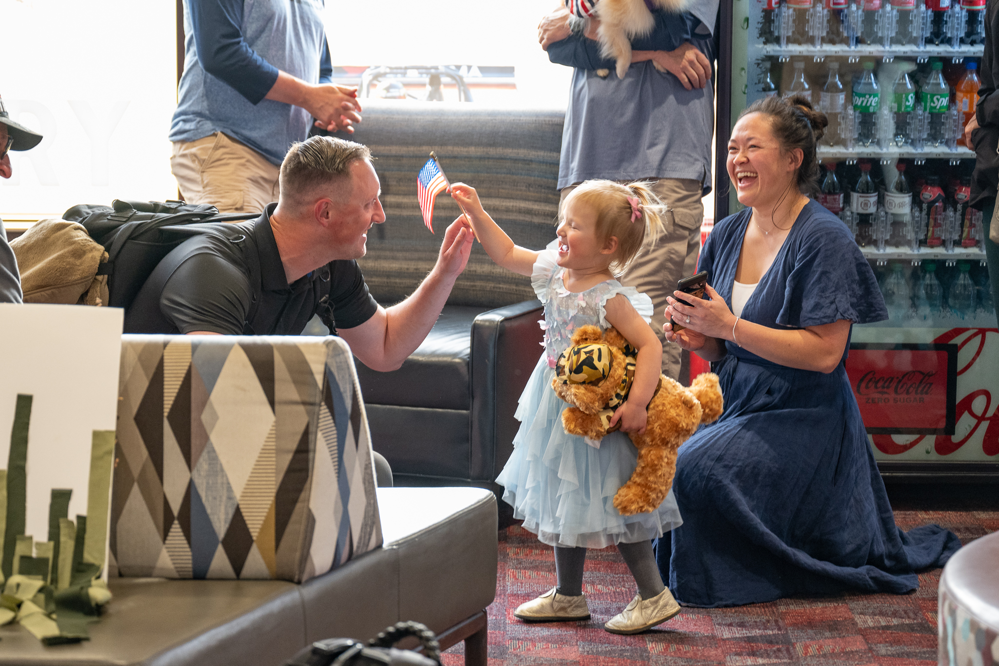 PETERSON SPACE FORCE BASE, Colo. -- Airmen from the 39th Aerial Port Squadron returned from deployment, reuniting with friends and family at the Colorado Springs Airport, Apr. 29, 2025. The reservists deployed to Southeast Asia for six months in support of U.S. Central Command processing cargo and passengers at various aerial port facilities. (U.S. Air Force photos by Stacey Knott)