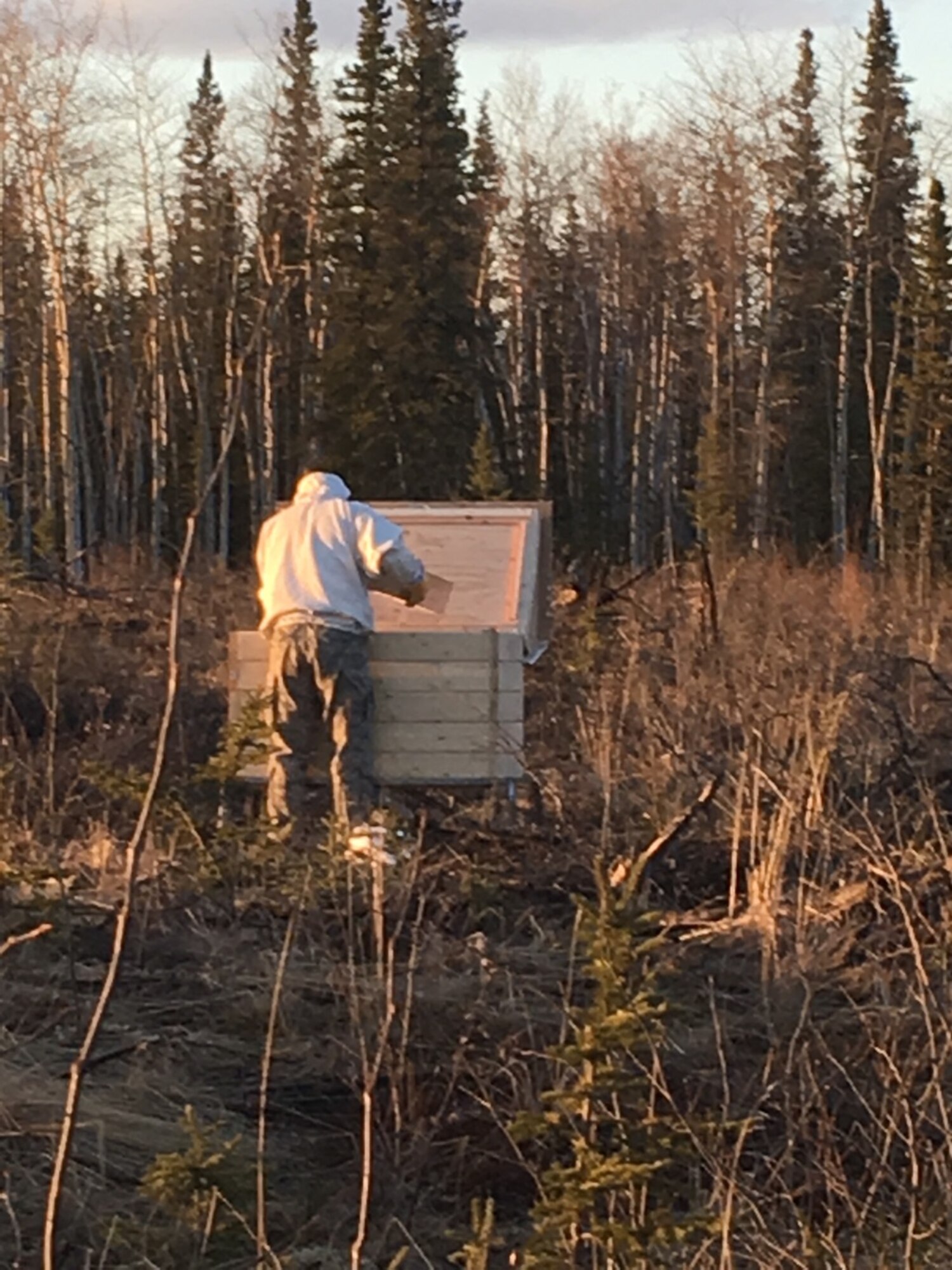 CLEAR AIR FORCE STATION, Alaska – Tech. Sgt. James Campbell, Alaska Air National Guard 213th Security Forces Squadron, works to keep Clear Air Force Station safe. Campbell began beekeeping six years ago and now he, among several others, have active hives on the installation each season. (Courtesy Photo)