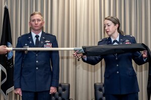 U.S. Space Force Lt. Gen. Stephen Whiting, Space Operations Command commander, and U.S. Space Force Chief Master Sgt. John Bentivegna, Space Operations Command command chief, answer questions from Space Delta 6 – Cyberspace Operations personnel at Schriever Space Force Base, Colorado, Aug. 4, 2021.